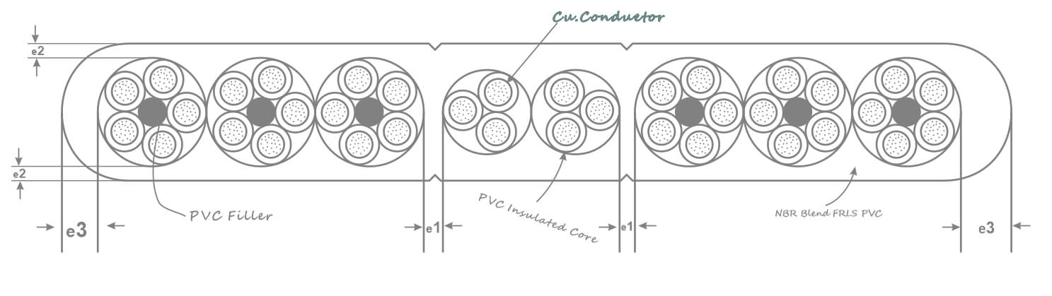 4 ~ 25 mm2 - Annealed bare Cu Cond., Special elastomeric blend PVC Insulated & Sheathed Flat Travelling Cable; 450/750 V